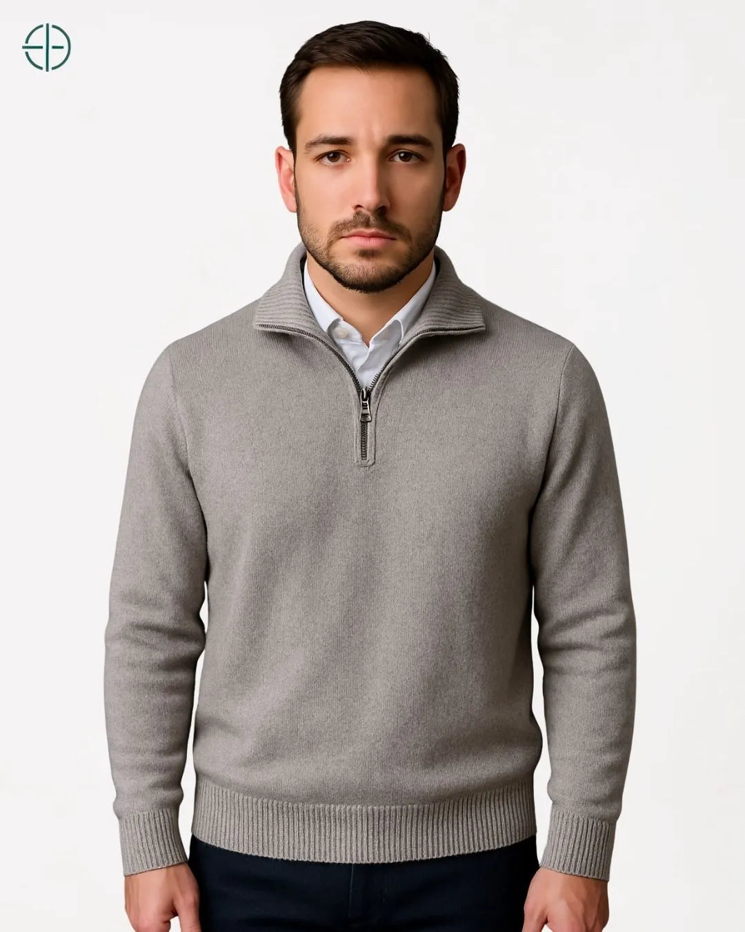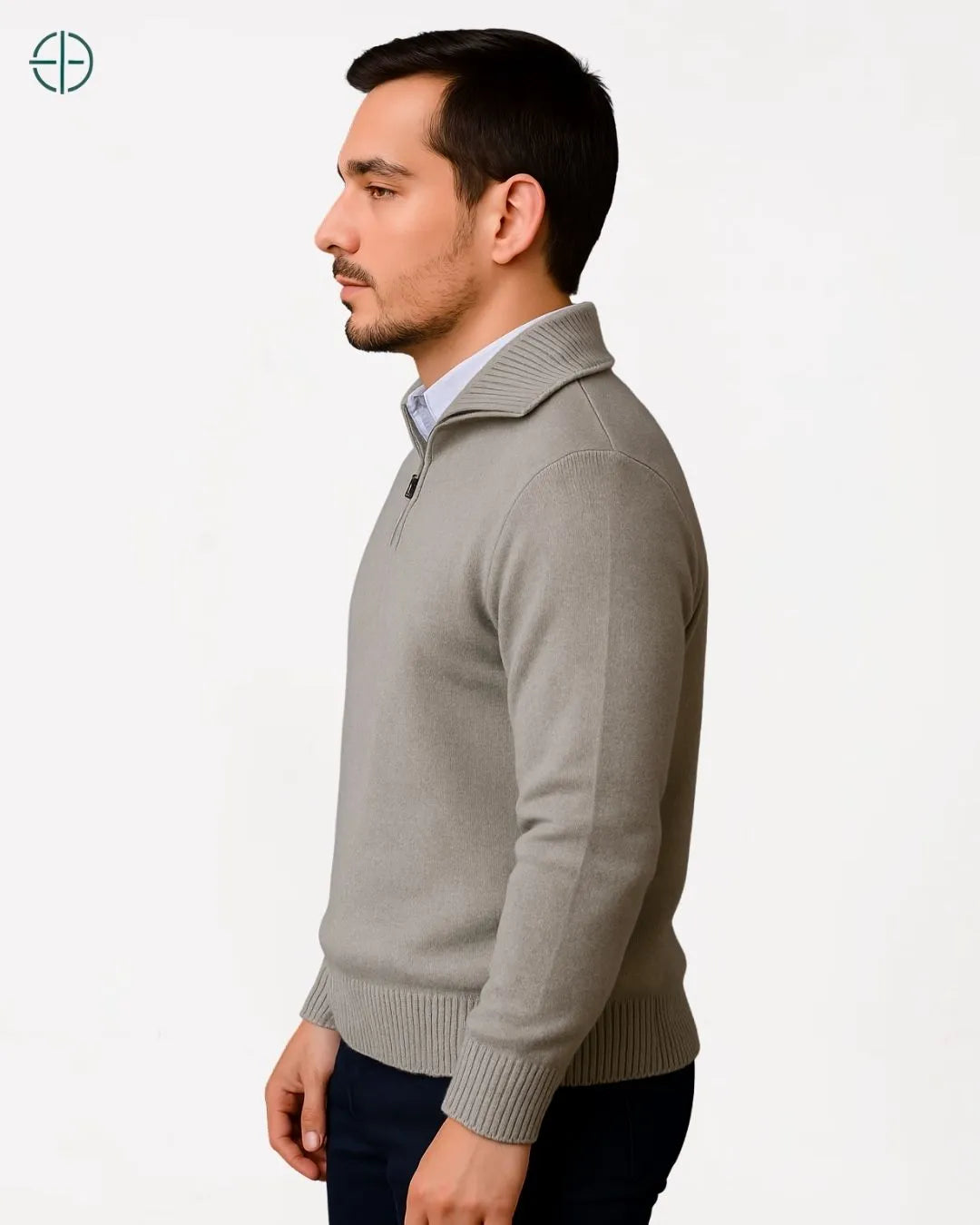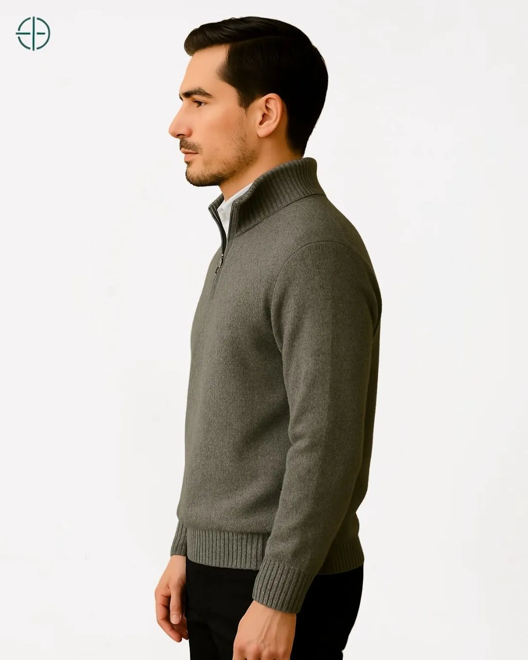 Suéter Meio Zíper Gola Alta 100% Caxemira | Rest Money™