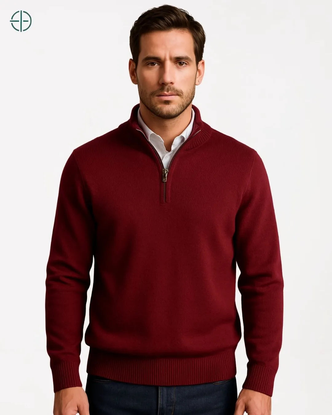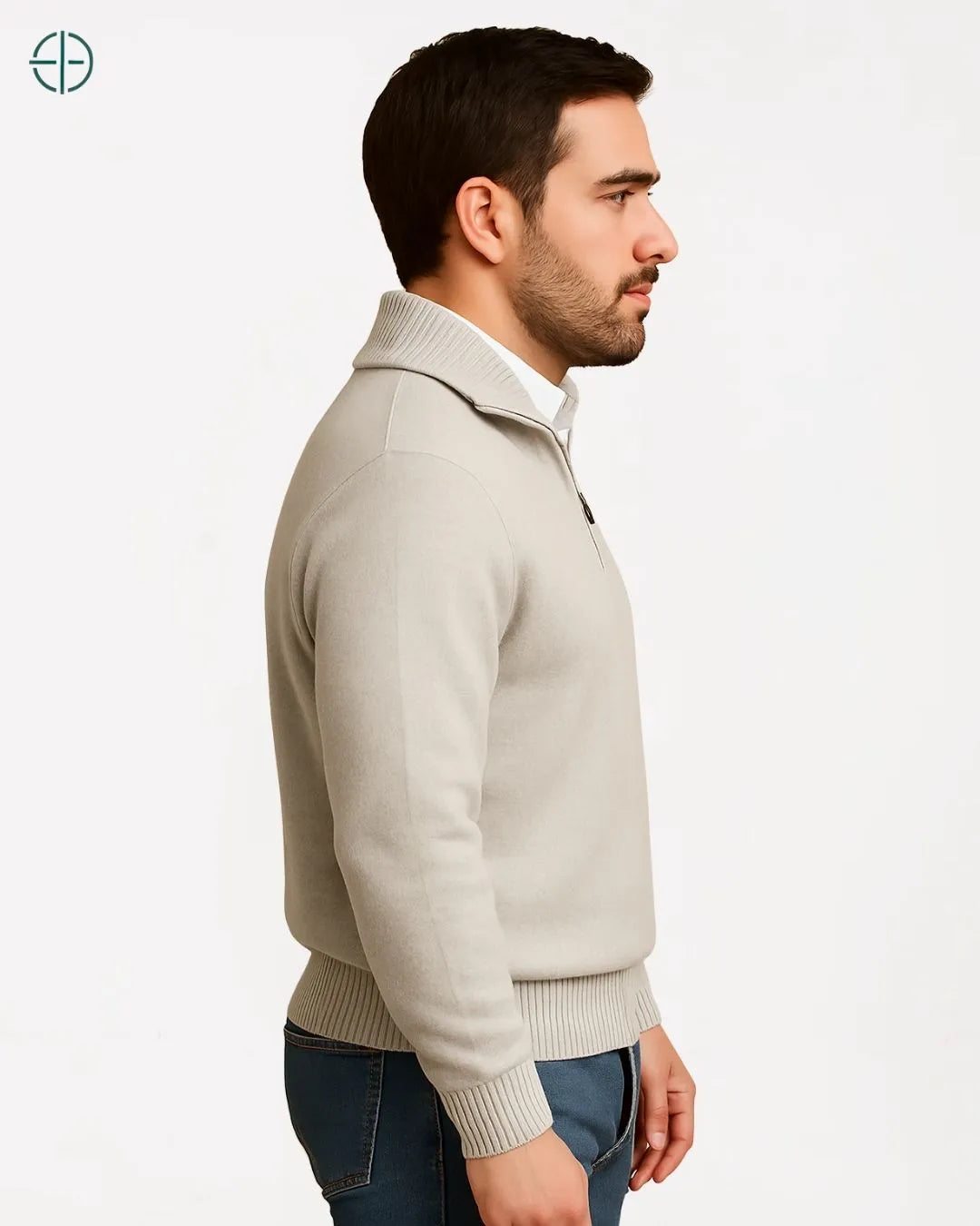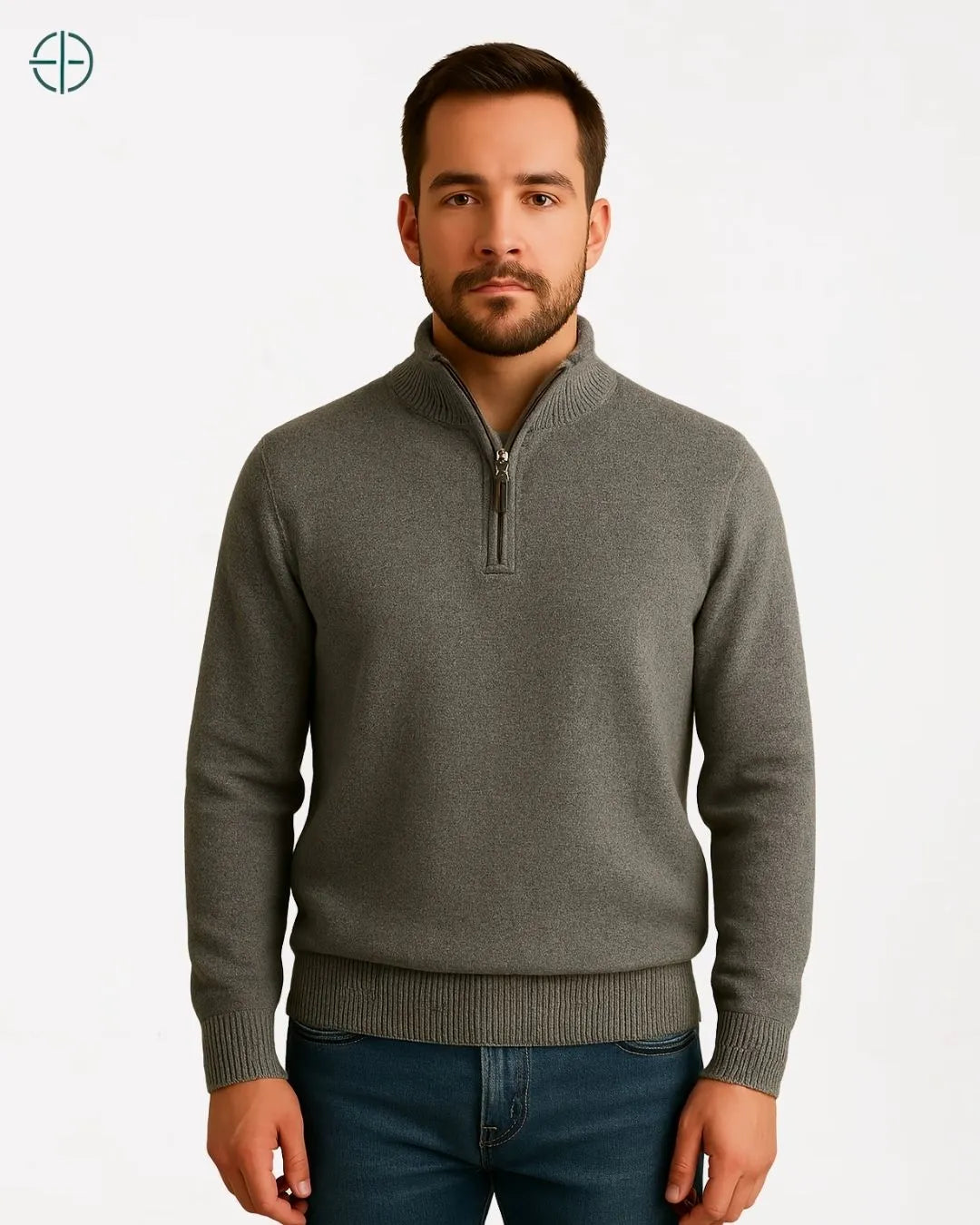Suéter Meio Zíper Gola Alta 100% Caxemira | Rest Money™