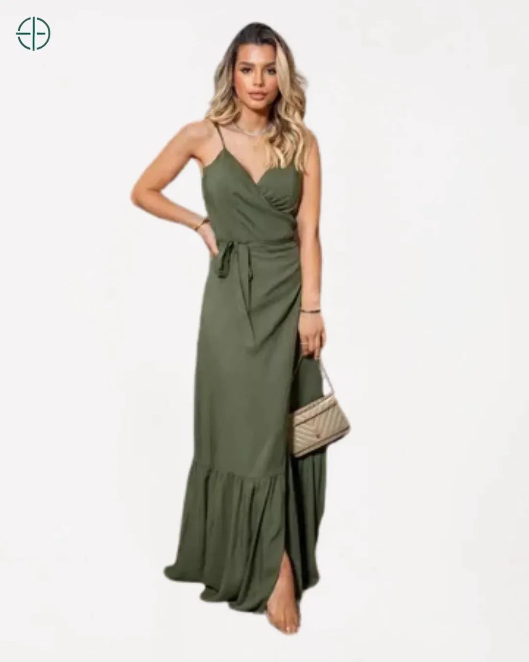- Modelo: Envelope longo com alcinha fina
