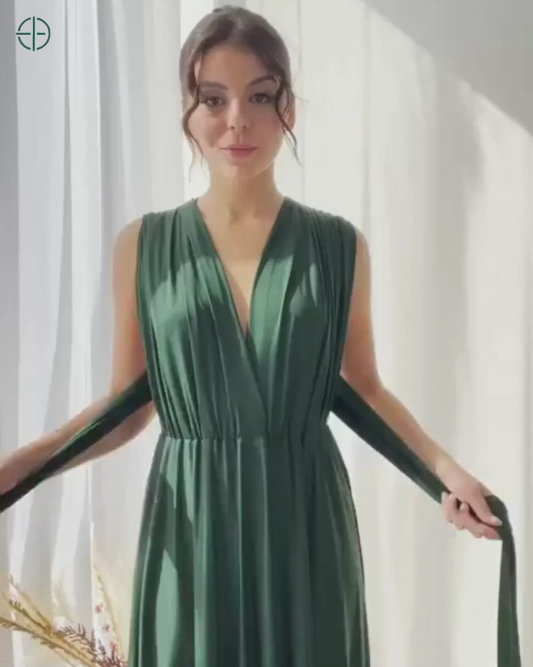 - Versatilidade: O vestido pode ser usado de várias formas, ajustando-se ao seu estilo e ocasião. Use-o como longo, midi ou curto, com decote em V ou arredondado, com ou sem mangas. Uma peça que se adapta ao seu corpo e à sua criatividade.